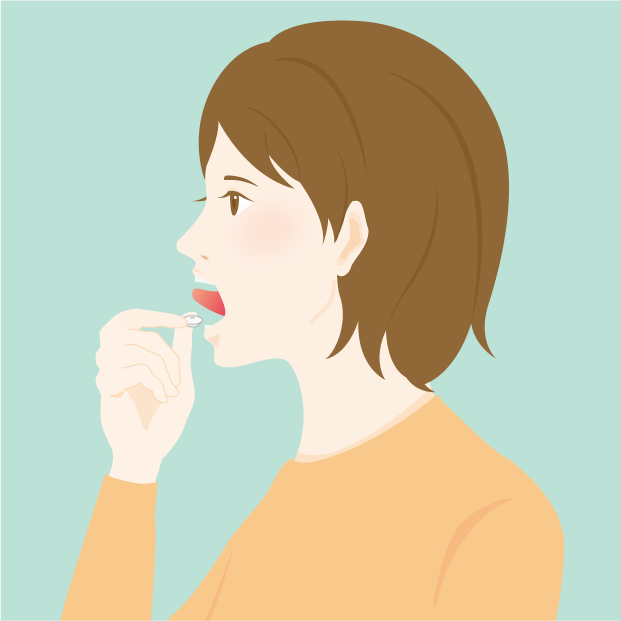 治療薬を舌の下に置き、お薬ごとに定められた時間保持したあと、飲み込みます。